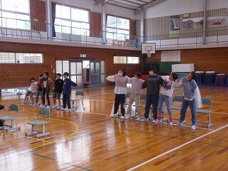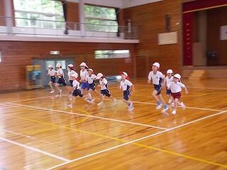 今日は、体育館で準備運動の一つとして、ランニングをしていました。