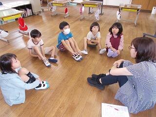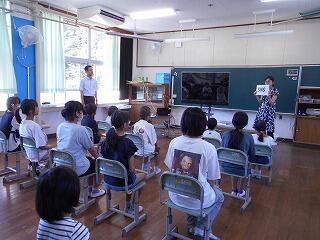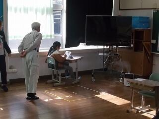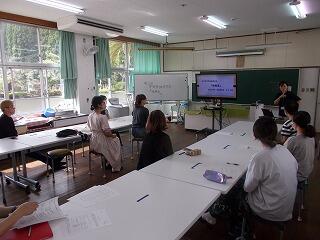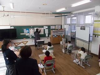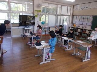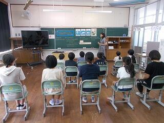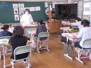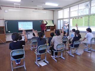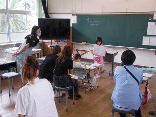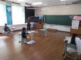 1・2年生は、自己紹介と普段の授業の様子の紹介でした。