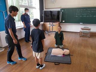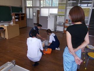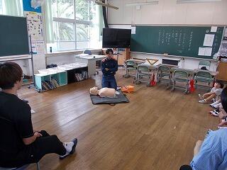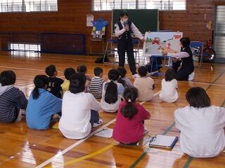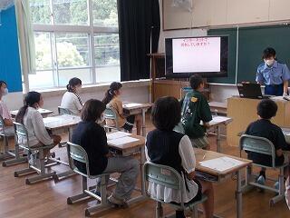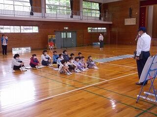 警察の方と交通指導員の方においでいただき、道路の横断の仕方と自転車の点検の仕方を中心に、交通事故から命を守る方法について、具体的に教えていただきました。