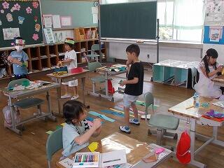 子どもたちは、熱心に、好きなものや好きな事の紹介に挑戦していました。