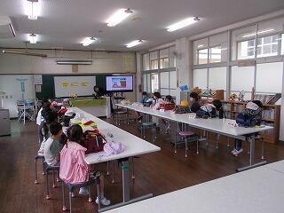 1・2年生は、明日の校外学習に向けての事前学習をしていました。