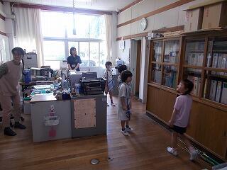 校長室にいると、2階から、にぎやかな音が聞こえてきました。