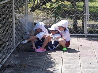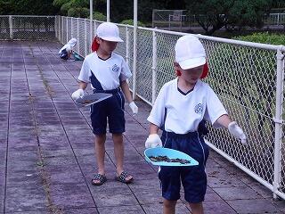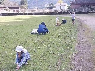 1・2年生は、グラウンド上の落ち葉を拾いました。