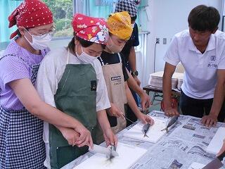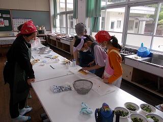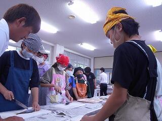 地域の皆さんに教えていただきながら、手早く作業していきます。