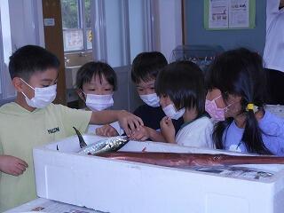 マンゴーやパイナップルなどの身近な果物などがあり、子どもたちは興味深そうに見学していました。