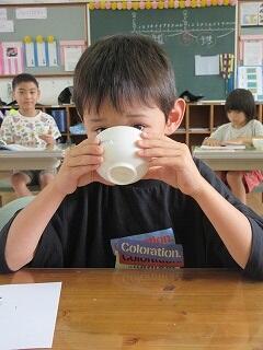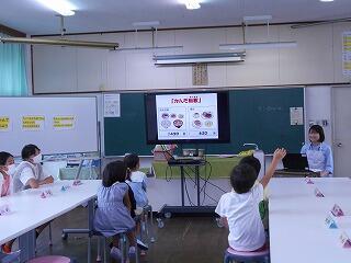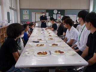 給食も、2年生から6年生までの児童と一緒に、ランチルームで食べました。