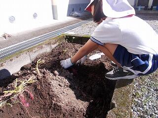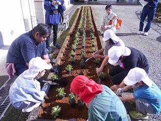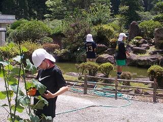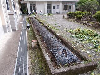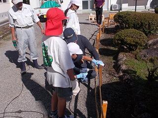 4年生は、花壇に水やりをし、さらに整備を進めました。
