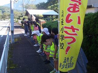 1年生や地域の方も一緒に、元気よくあいさつをすることができました。