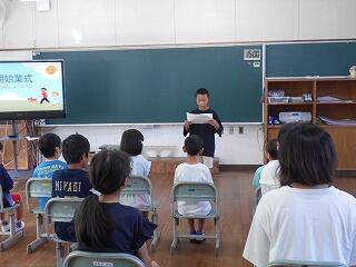 代表の作文発表では、漢字を覚えること、行事に関わってくださる方に感謝し一つ一つの行事を大切にすること、最高学年として元気な挨拶をしたりルールを守ったりしてお手本になること、楽しいだけではなく、協力し合って真剣にがんばることなど、素晴らしい目標をはっきりと述べることができました。