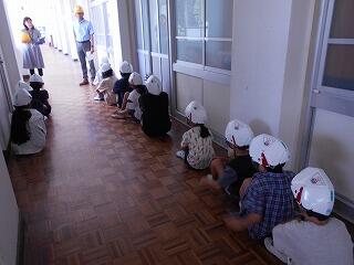 突然の大雨で道路の冠水の恐れがあるという想定で、保護者のお迎えの待ち方までを訓練として行いました。