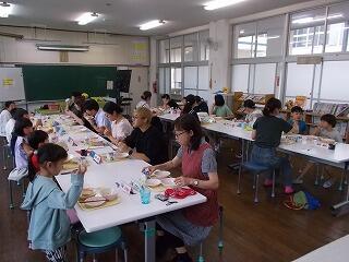 1年生は壁に貼る物、2年生は輪の形を生かして、身に付けるものです。