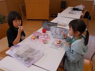 仲良くお弁当を広げ、おいしそうに食べていました。
