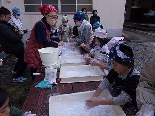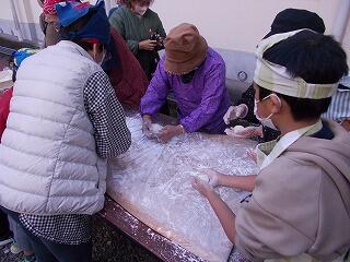 時には蒸したての餅米を試食したり、たき火にあたったりするなどして、和やかに会は進みました。