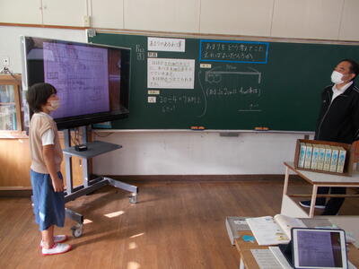 3,4年の学級、5年の学級の両方で算数の研究授業を行いました。