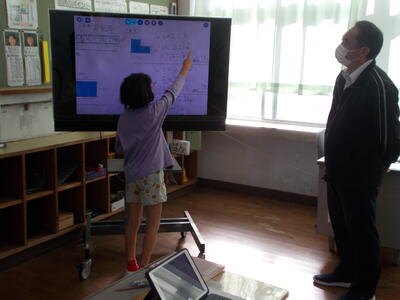 タブレットを効果的に使いながら、児童は一生懸命考え、自分の考えをしっかりと発表していました。