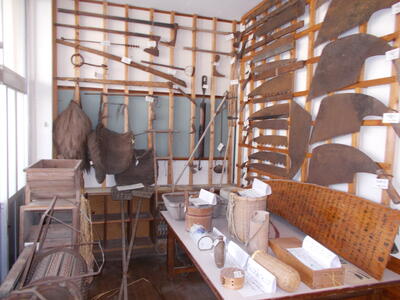 昔、山仕事で使っていた大きなのこぎりがたくさん展示してあります。