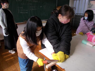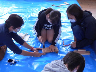 谷木材店の方々を講師として、飫肥杉を使った様々な商品の紹介や実際に木工も体験させていただきました。