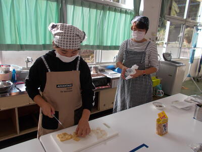 具材の切り方を教科書を参考にしながら、考えて切っていました。