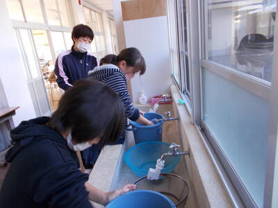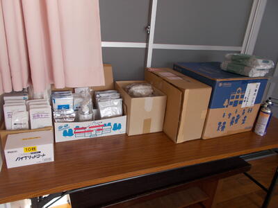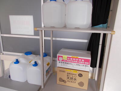 本校では、土砂災害等で交通網が遮断された場合に備え、防災用品を備蓄しています。
