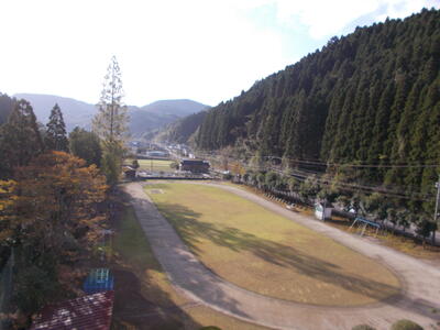 山々に囲まれ、自然いっぱいの中に酒谷小学校はあります。