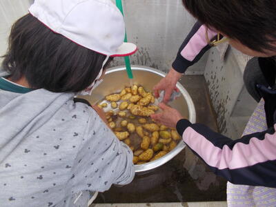 先日、ジャガイモの収穫を行い、きれいに洗って、試食を行いました。