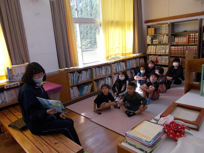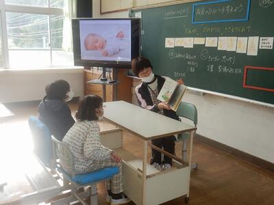 読み聞かせでは1年生も楽しそうに見入っていました。