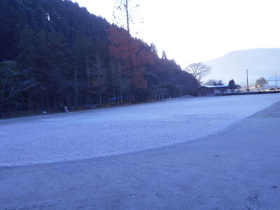 いつもの運動場とは様子が違い、霜で真っ白になっていました。