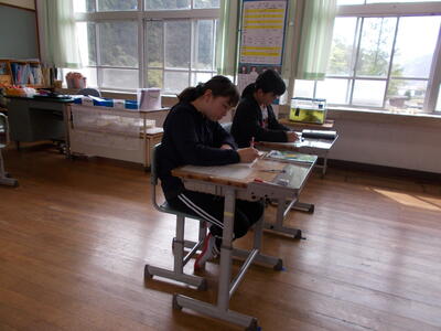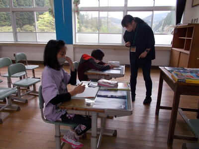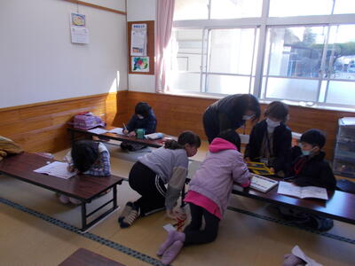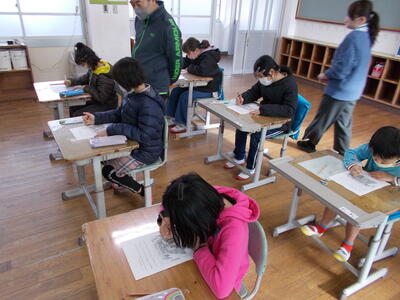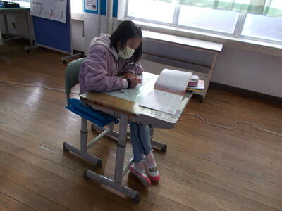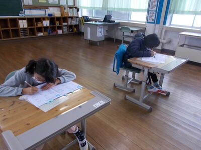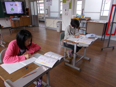 保護者が学級懇談会に出ている間は、全校児童で静かに自習をしていました。