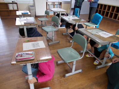 放課後こども教室の時間に地震が起こった場合を想定して行いました。