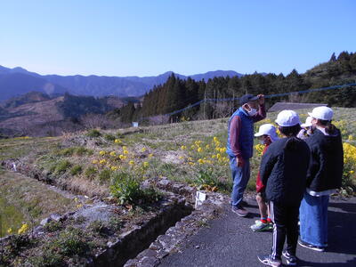 3月2日、道の駅酒谷と棚田の見学に全校児童6名で行きました。