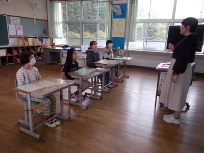 高柳小学校は全校児童6名、山間にある小さな学校で、酒谷小とはたくさんの共通点がありました。