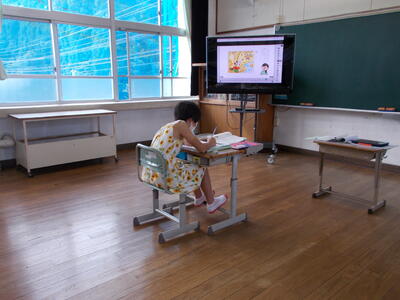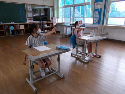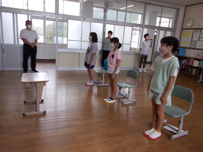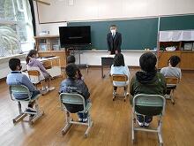 3名の児童も元気に登校し、1校時に始業式を行いました。