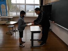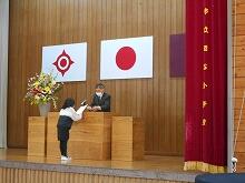 一人ずつ壇上に上がり、校長先生から修了証書をいただきました。