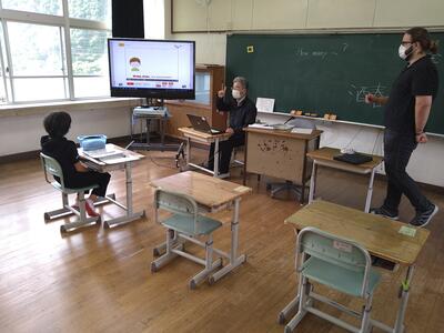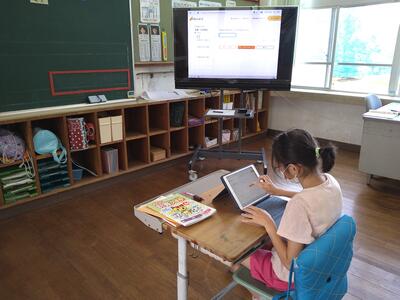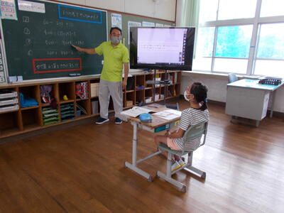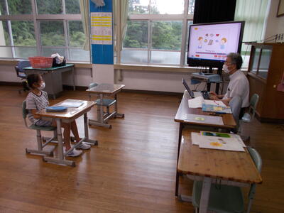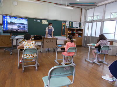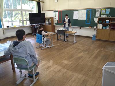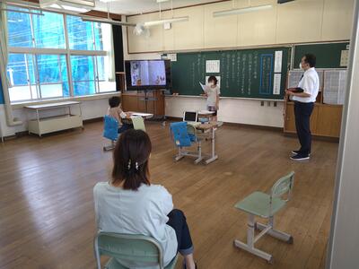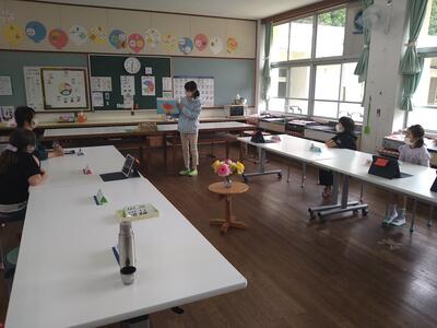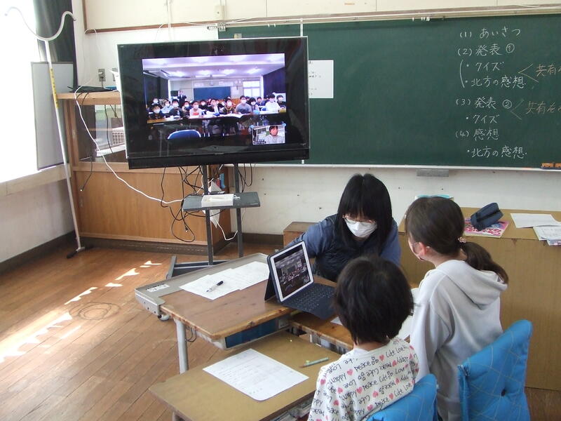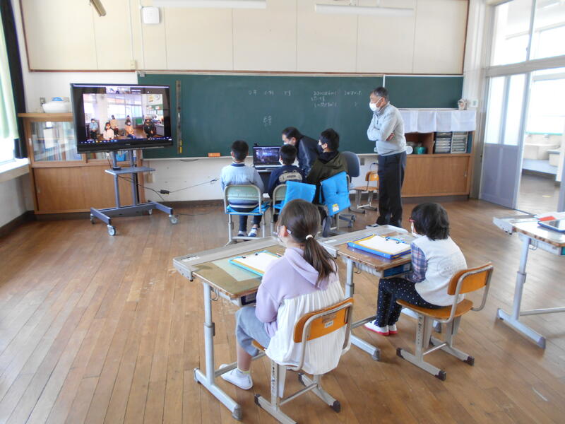 5・6年生が大窪小と、3・4年生が延岡市立北方学園の4年生とZoomを使って授業を行いました。