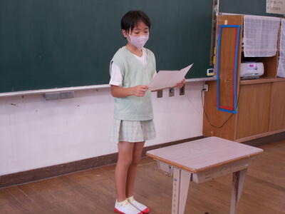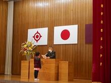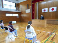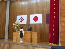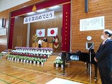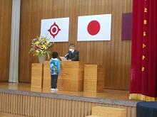 写真は児童代表あいさつと校歌斉唱の様子です。