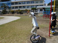 昨年度から、一輪車を練習していて、乗れるようにみんな必死になって練習を続けています。