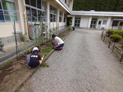 この酒谷小を緑いっぱい、笑顔いっぱいの学校にするために活動をがんばります。