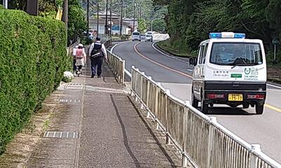 酒谷駐在所の巡査様が児童の見守りパトロールを行ってくださいます。