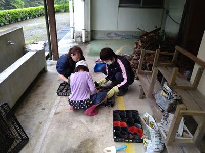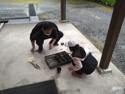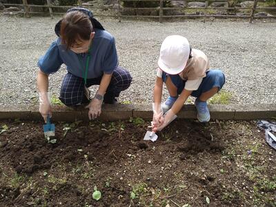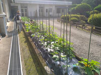 みどりの少年団活動の一環として、野菜や花の苗を植えました。
