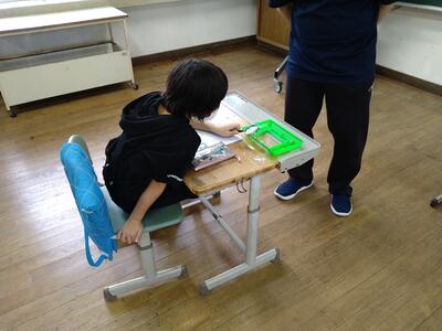 その後、すぐに身長に合わせて机、いすの調整も行いました。