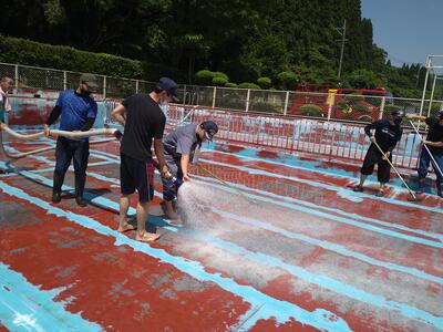 昨日からの2日間、環境整備員の皆様が、運動場の整備や樹木の剪定をして下さっています。