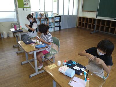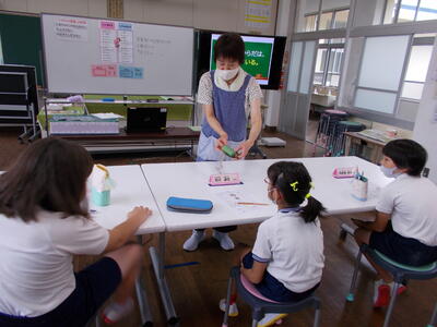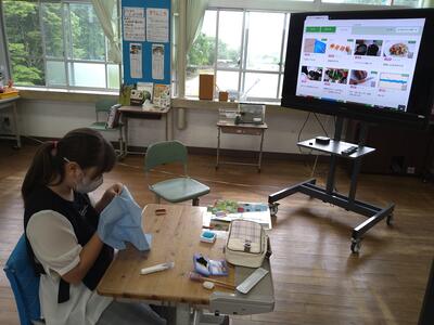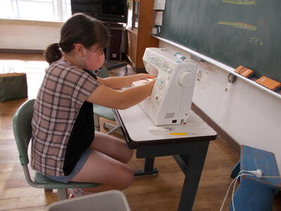 3年生は、外国語活動、4年生は算数で面積のまとめ、5年生はミシンの学習をしていました。