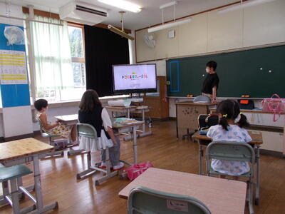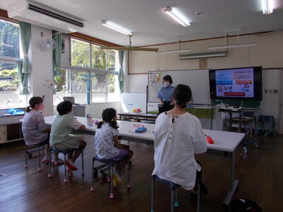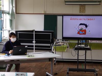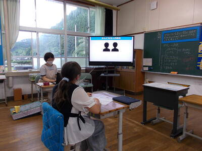 お互いが授業で調べ、まとめたことを発表する内容で、初めて交流する同年代の児童に向けての発表ということで、少し緊張していましたが、練習通りの発表をすることができていました。いつもは少人数での学習ですが、様々な人や考えに触れるよい機会となりました。今後もこのような学習を行いながら、児童も職員も視野を広げる機会としていきたいです。