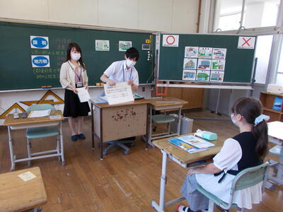 県税事務所から2名の方が来て下さり、、税の必要性についてわかりやすく教えていただきました。