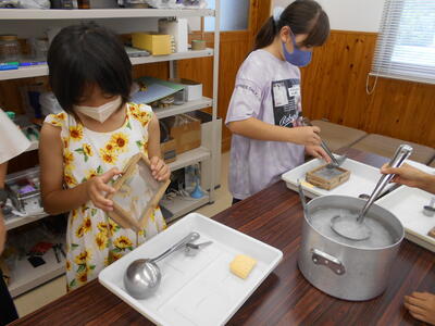 子どもたちは初めての体験に興味をもって取り組み、すばらしい作品ができあがりました。