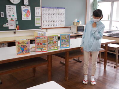 図書司書の先生が、防災に関する本の読み聞かせと本の紹介をして下さいました。