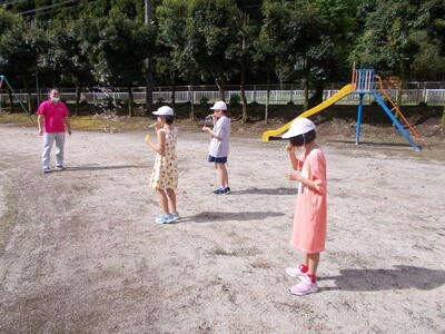 先日、子どもたちは運動場でシャボン玉遊びをしていました。