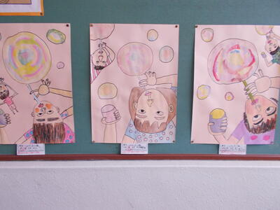 先日、描いていたシャボン玉の絵が掲示してあります。