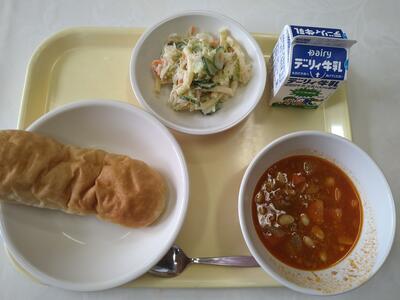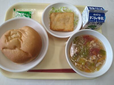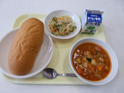 フォーはベトナム料理で用いられる平たいライスヌードルです。出汁もよくしみこんでおいしくいただきました。パンは米粉パンで、今日は米に関わるメニューが多く出ました。米がいろんな料理に使われることを実感しました。