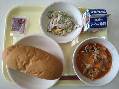 タンドリーチキンはカレー味で、パンに合うメニューです。